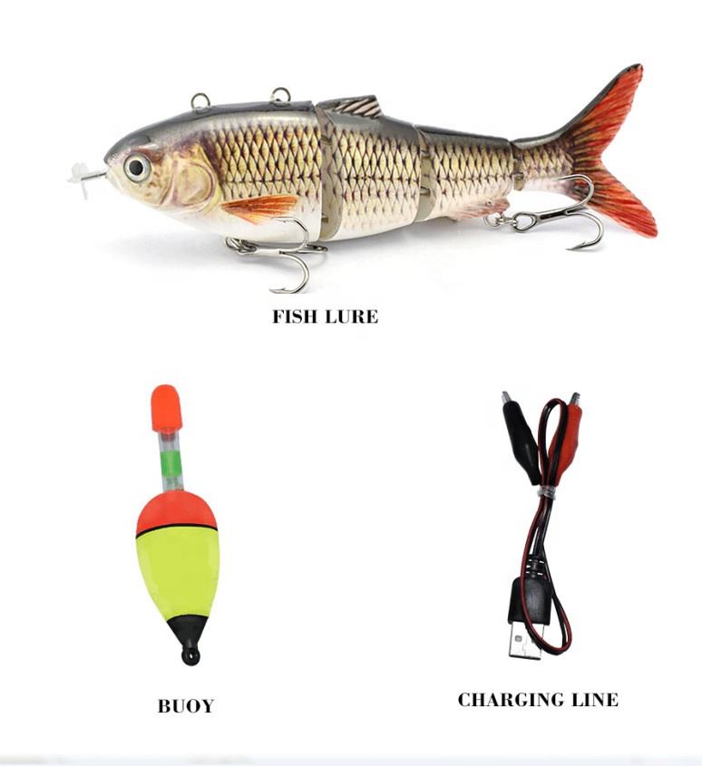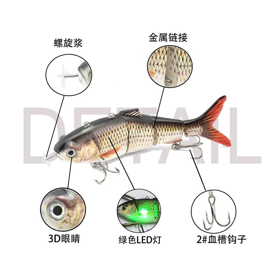 Leurre de Pêche Électronique à LED en Plastique Dur, Nage Automatique Quatre Sections Rechargeable, Leurre Robot-Poisson Auto-Propulsé