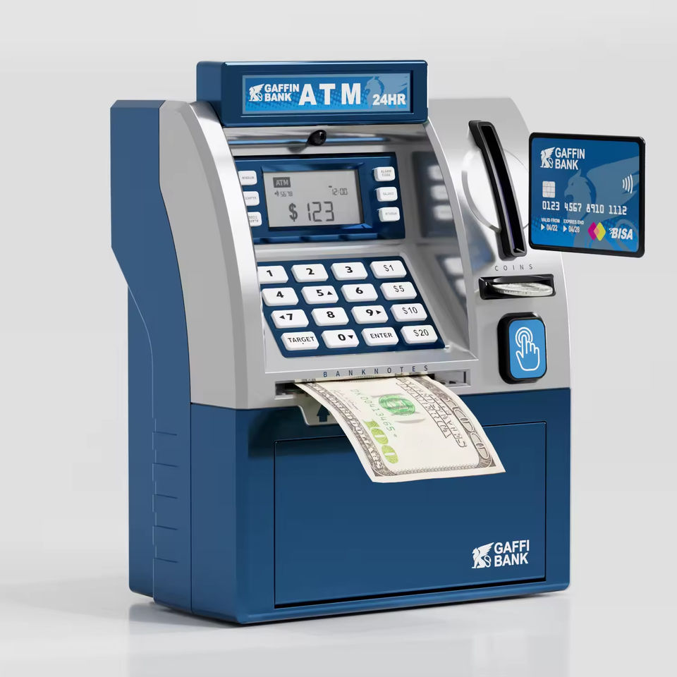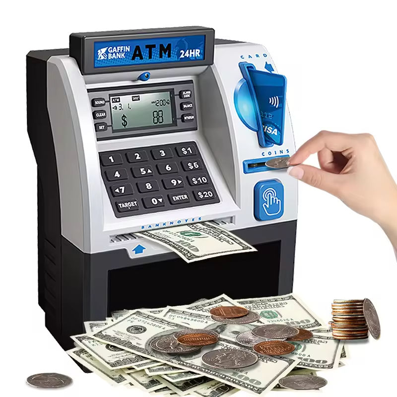 Mini banque électronique ATM Tirelire avec écran LCD, jouet pour enfants, avec reconnaissance des pièces de monnaie et fonctionnalité de carte de débit