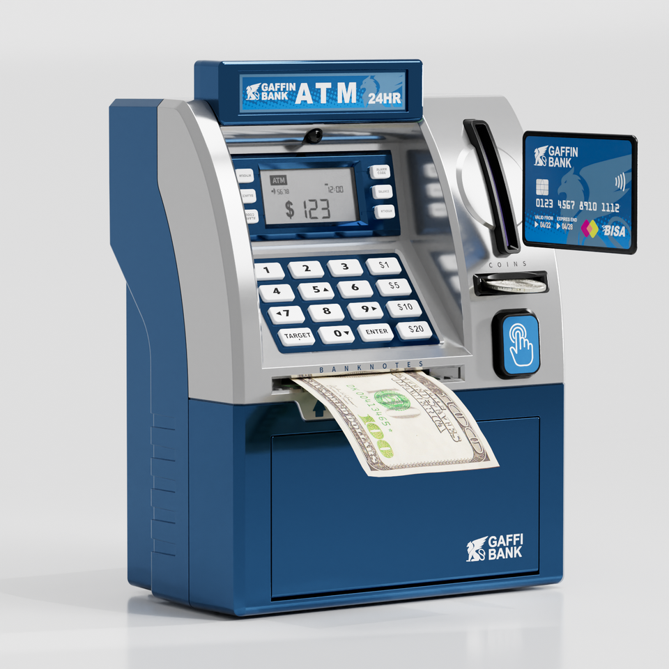 Machine Distributrice ATM Électronique Miniature avec Écran LCD, Tirelire ATM Économique pour Enfants avec Reconnaissance des Pièces et Carte de Débit