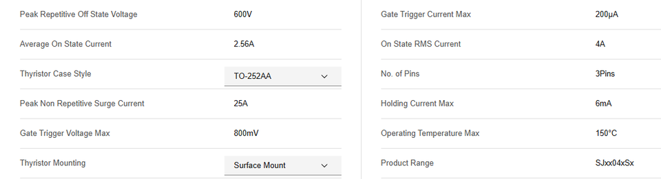 600VPeak Repetitive Off State Voltage