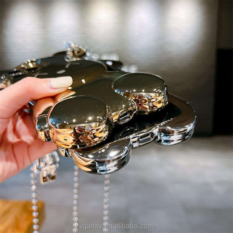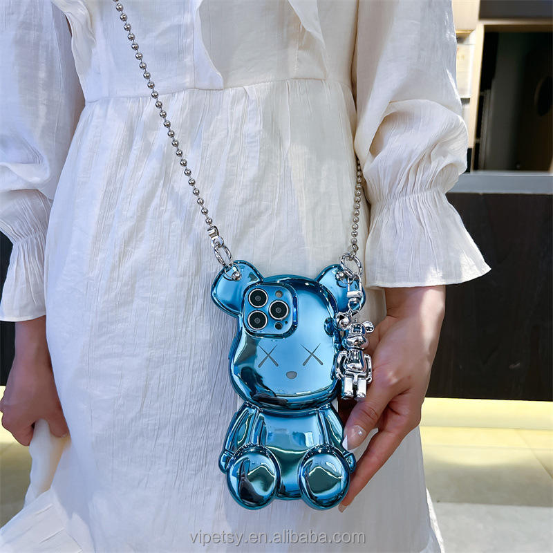 Coque de téléphone ours 3D galvanisée avec housse de téléphone en silicone absorbant les chocs 11 12 13 14 15 Pro Max pour téléphone