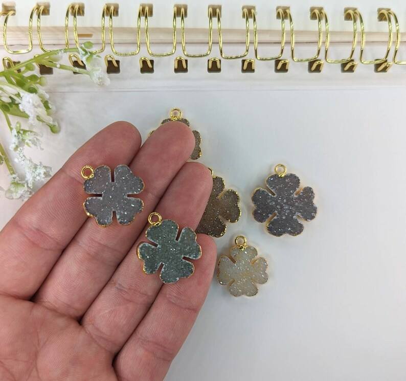 Keyword:Handmade Druzy clover Pendant 925 Sterling Silver