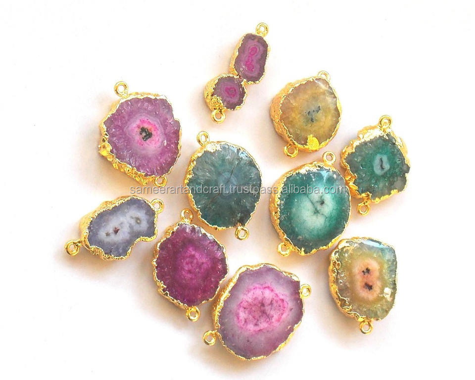Electroplated Druzy Solar Quartz Gemstone Gold Plated Bezel ConnectorProduct Name