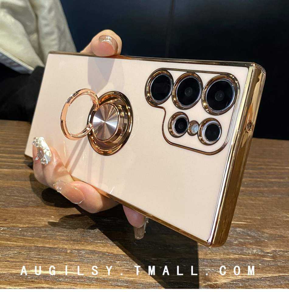 Étui en TPU de luxe électroplaqué pour S24 Ultra KAOU Gravure au laser Étui commercial inclus Support magnétique amovible