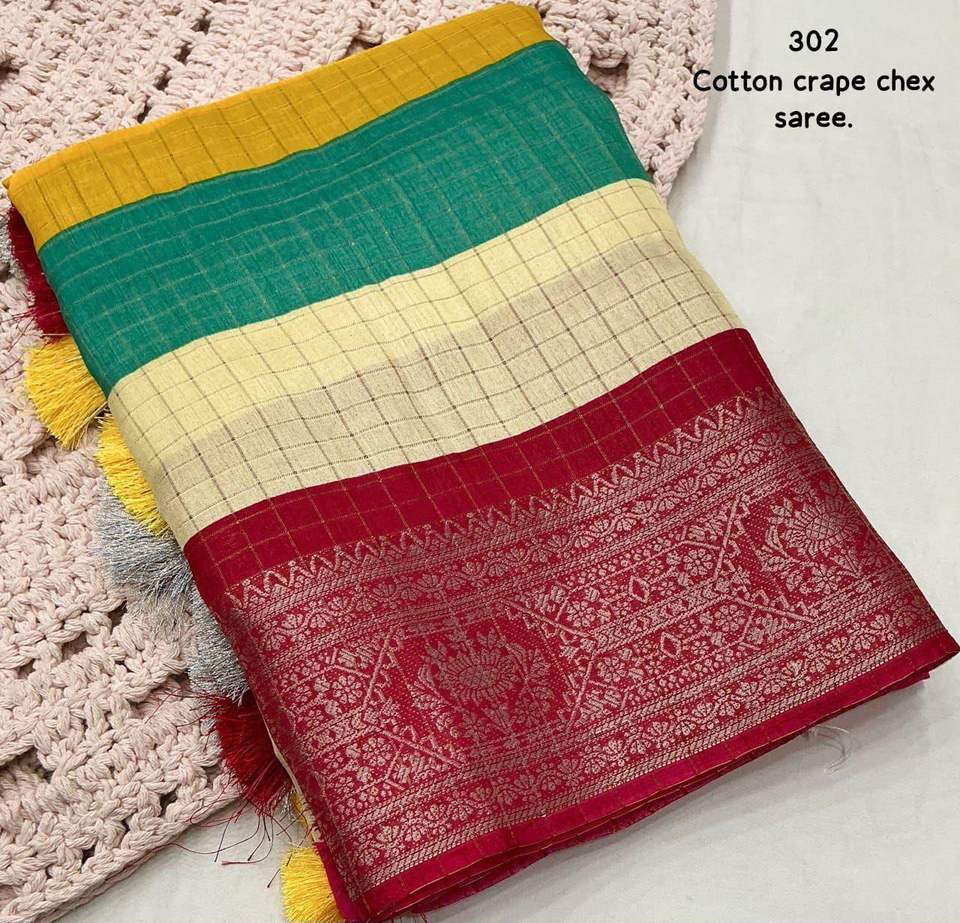 Product Name:Elegance Cotton Crape With Zari Weaving Saree