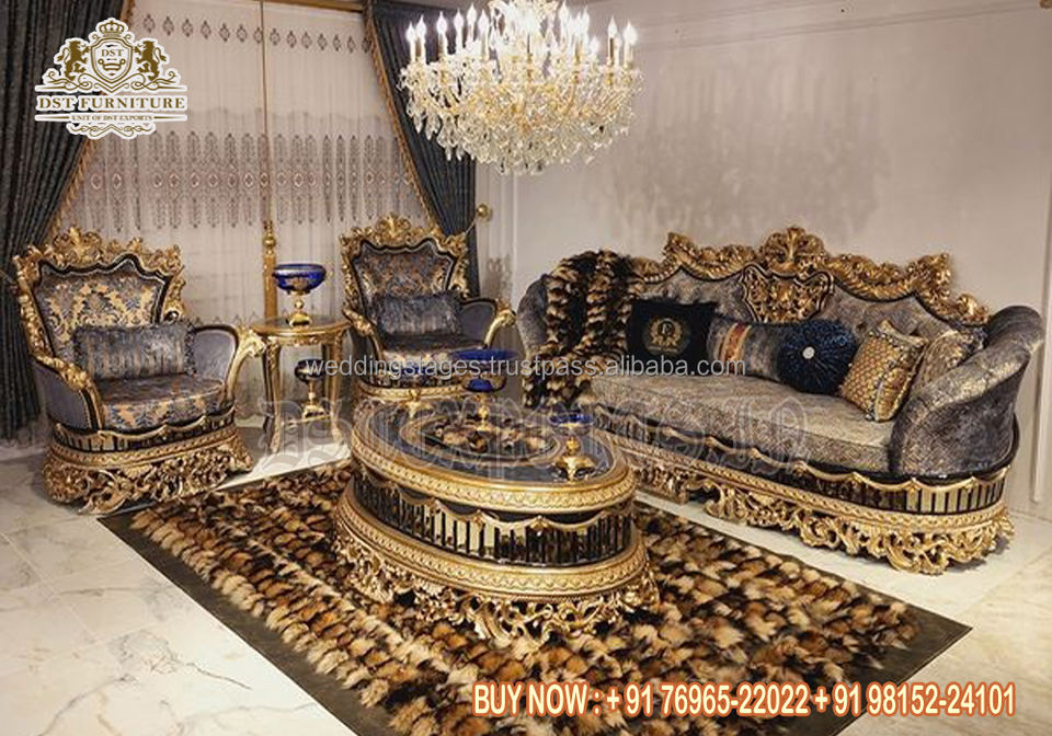 Ensemble de canapés élégants et confortables avec sculpture lourde Ensemble de meubles de salon de luxe sculpté à la main Ensemble de canapés 8 places pour la maison