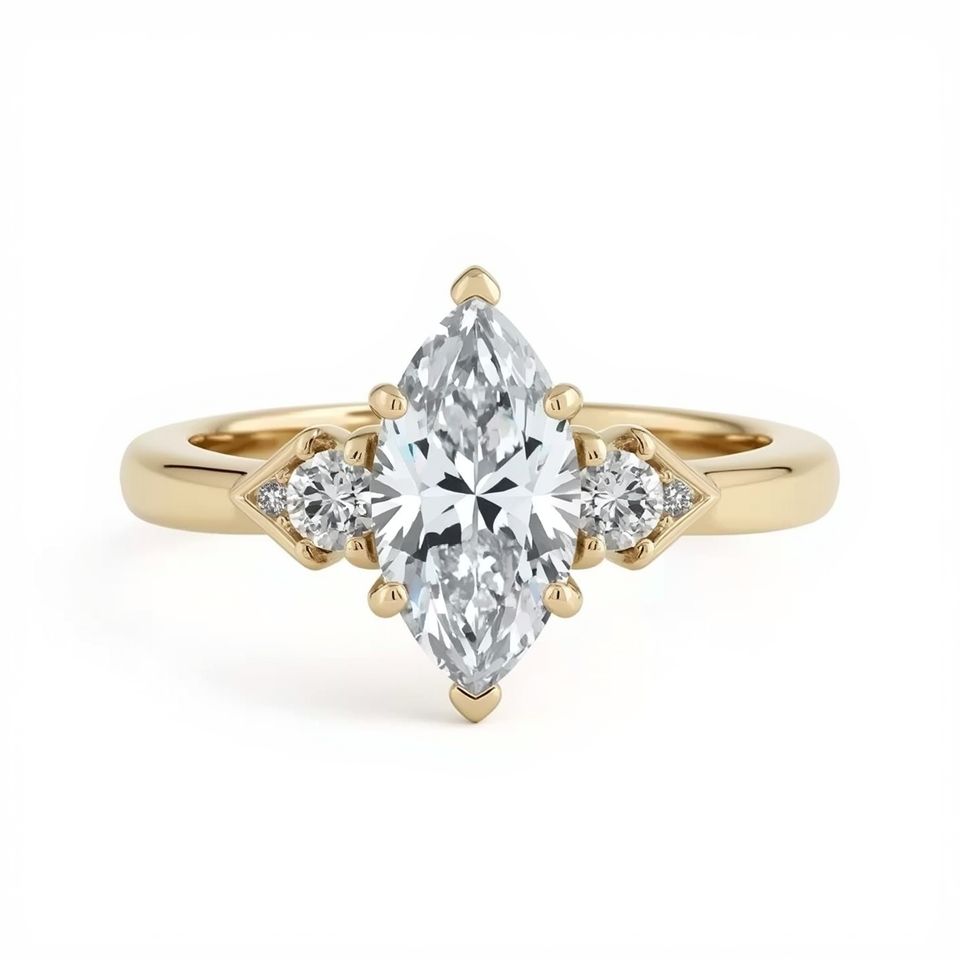Elegant 10K Gold Marquise Diamond Solitaire Engagement Ring with Side Diamonds for Women's Wedding or Party Occasions