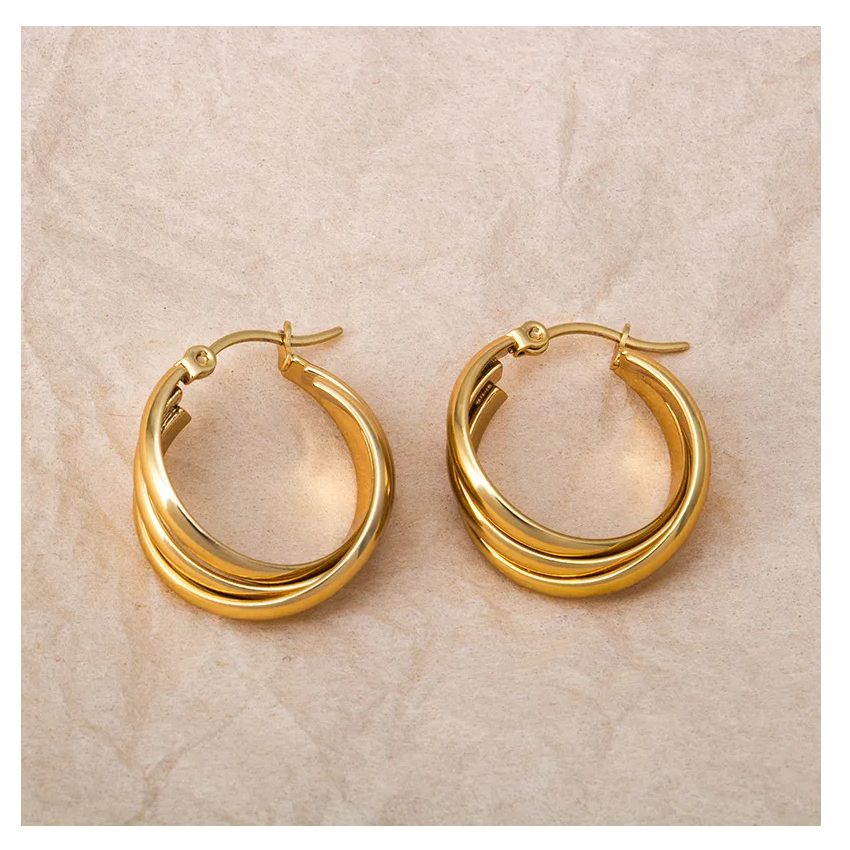 Elegant 18K Gold Plated Stainless Steel Cross Earrings for Women Waterproof Twisted Stud Earrings with Pearl Stone