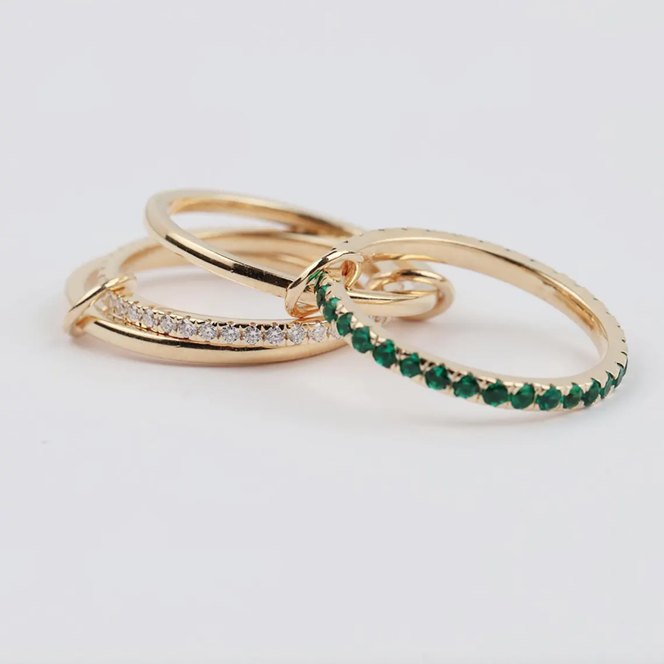 Nom du produit:Bagues connecteurs tournantes en or massif 18 carats avec émeraude naturelle et diamant de laboratoire