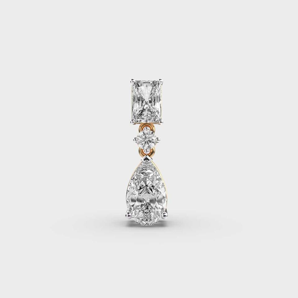 Elegant 3 Stone Lab Grown Radiant Round and Pear Diamond Pendant en 18Kt Yellow White & Rose Gold Rhodium Plated IGI Certified