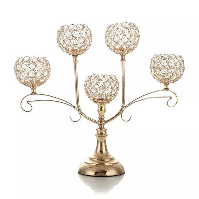 Candélabre élégant en métal à 5 bras avec bougeoirs en cristal pour fête de mariage et décoration intérieure Centre de table Fourniture en gros