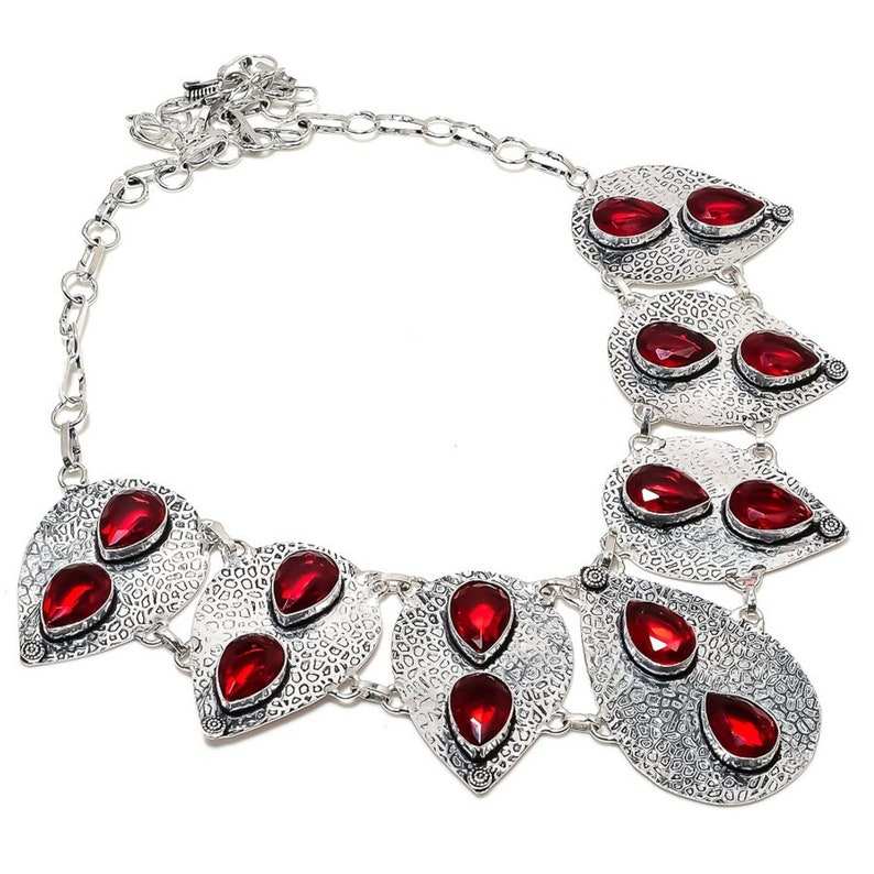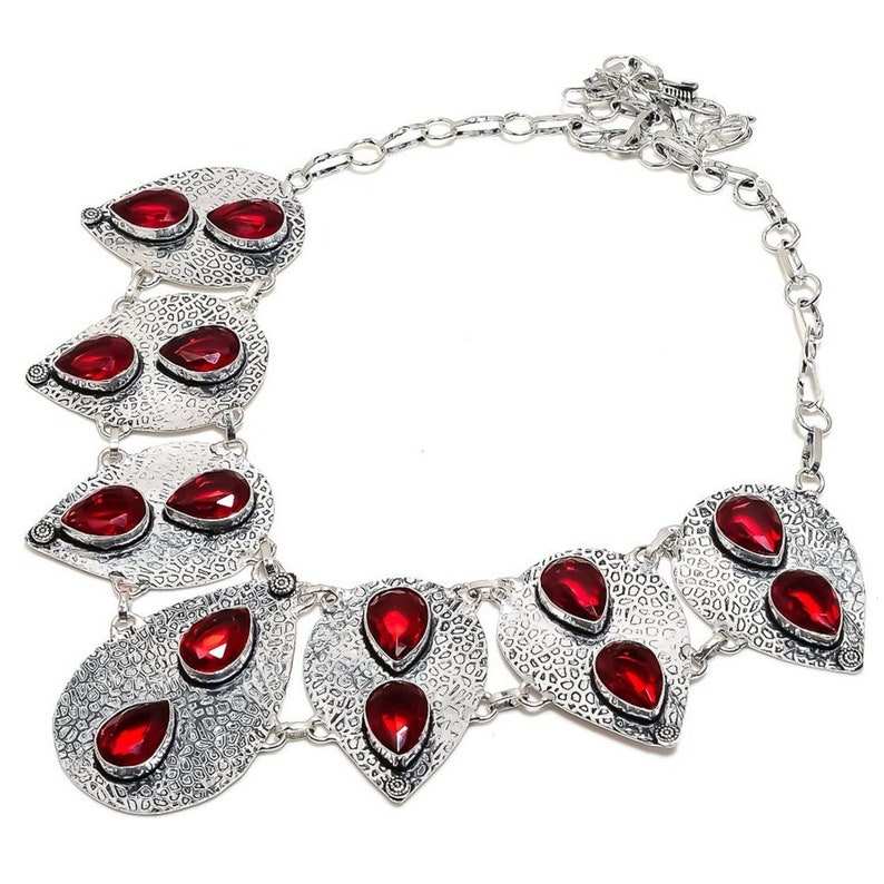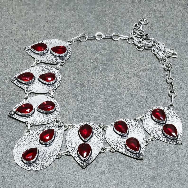 Elegant 925 Silver Plated Necklace for Women Beautiful Mozambique Garnet Fashion Choker Style with Red Garnet Pearl Main Stone