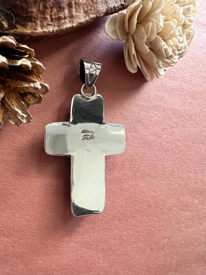 Elegant 925 Sterling Silver Cross Pendant with Gold Silver Rhodium Plating and Sleeping Beauty Turquoise Bezel Setting