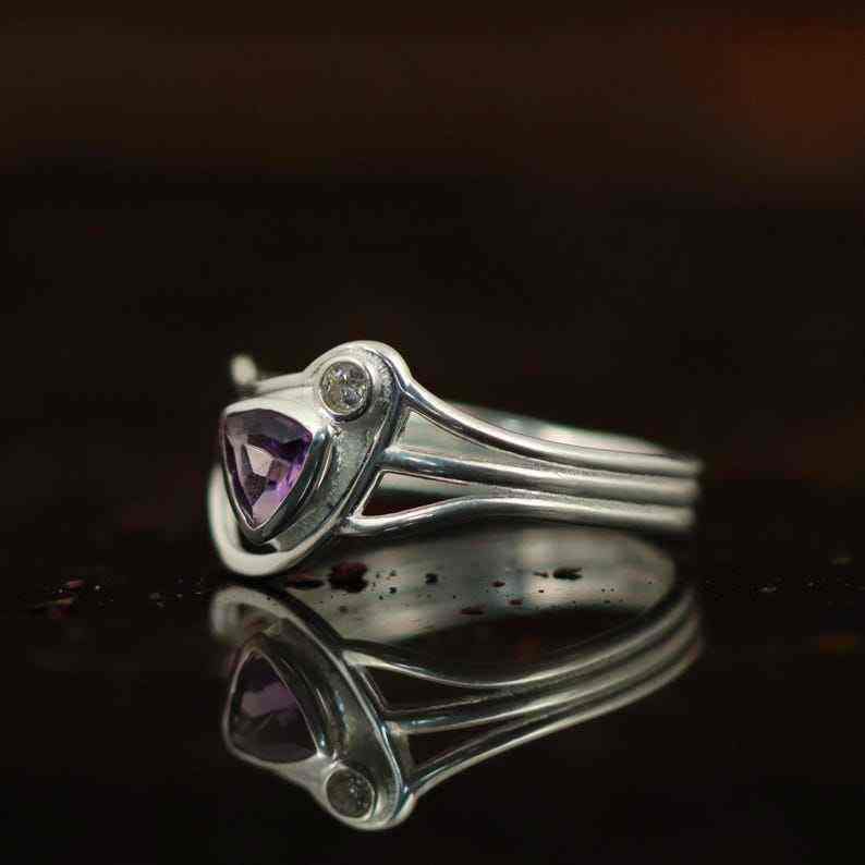 Elegant 925 Sterling Silver Trillion Cut Amethyst Promise Ring Unique Purple Gemstone Gift For Her