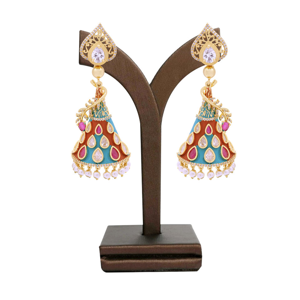 Gold Plated AD Dangle Jumki Earring SetEarrings Type