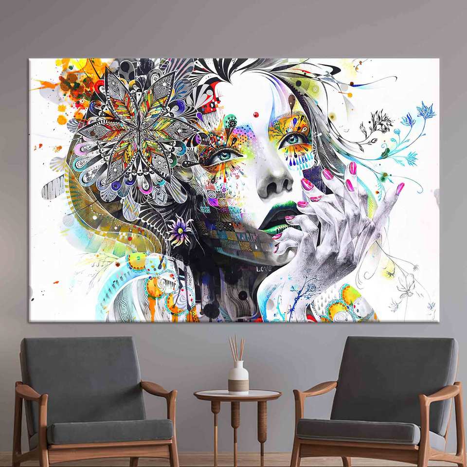 Toile imprimée élégante avec portrait abstrait de femme pour décoration moderne, toile encadrée