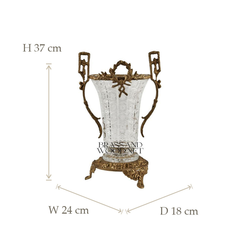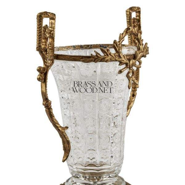 "Elegant Antique Brass and Glass Vase with Ornate Handles and Decorative Base for Luxurious Home Interiors"