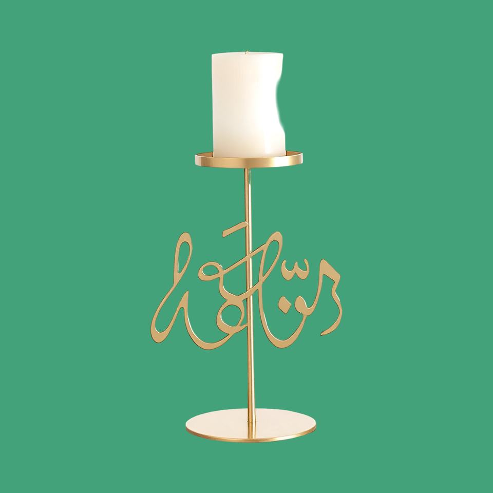 Elegant Arabic Calligraphy Candle Stand Tea Light Available Gold Metal Design for Sophisticated Home Decor and Memorable Gifts