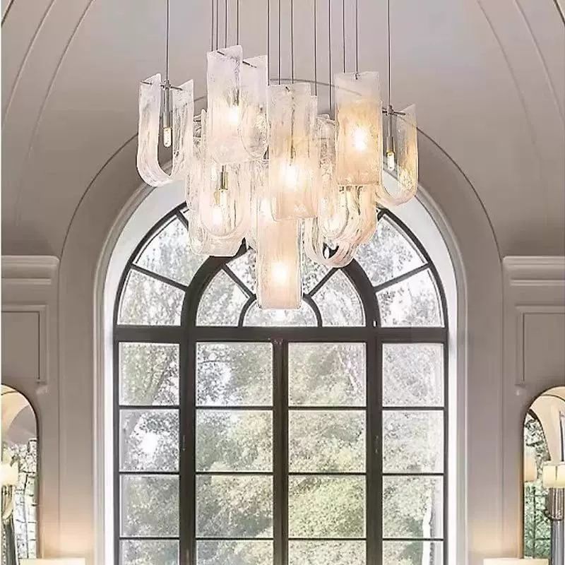 Lustre suspendu cylindrique en verre transparent Design Cluster Art Déco élégant-Luminaire multi-lumières brumeux pour intérieurs modernes