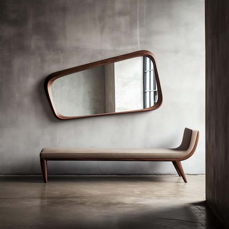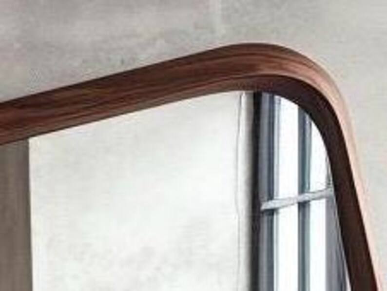 Elegant Asymmetrical Walnut Wooden Frame Mirror Handmade Wavy Irregular Contemporary Art Deco Style for Bathroom Vanity Wall