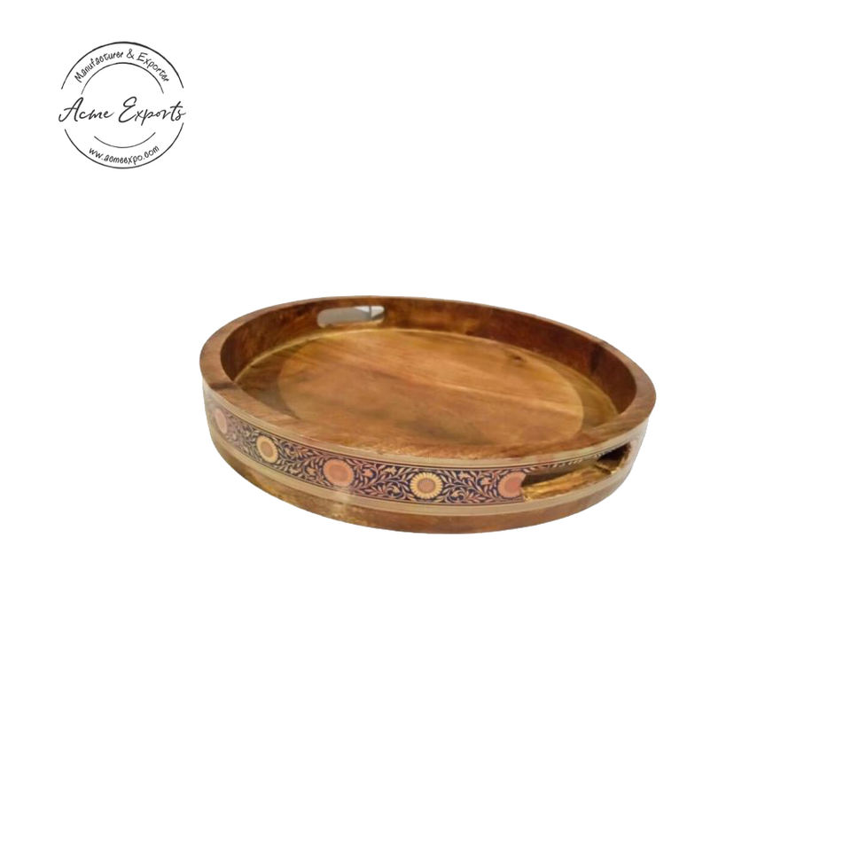 Ensemble de plateau de service en bambou élégant durable et écologique avec poignées élégantes, idéal pour le petit-déjeuner ou les invités.