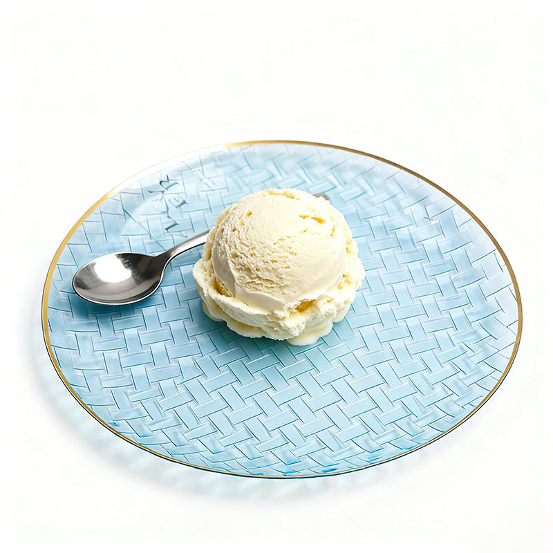 Assiettes de présentation élégantes en plastique à motif tressé avec bord doré, vaisselle jetable pour mariages, traiteurs, banquets, restaurants
