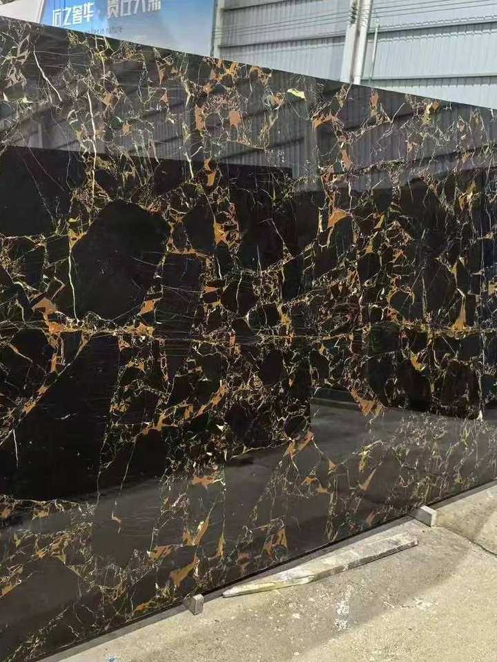 Elegant Black Gold Marble Fireplace Surround Luxury Living Room Natural Stone Polished Golden Patterns Modern Heat Resistant