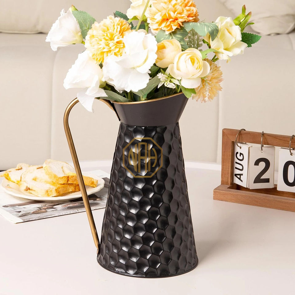 Elegant Black Metal Pitcher Vase Farmhouse Galvanized Flower Jug Decorative Centerpiece Wholesale Factory Supplier Exporter