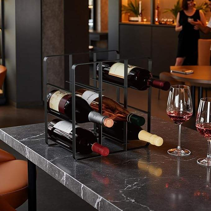 Élégant porte-bouteilles en fil métallique noir avec motif d'ours, idéal pour la décoration de la maison, les mariages et l'affichage de matériel de bar