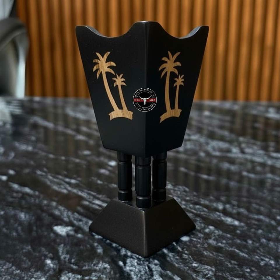 Elegant Blue Acacia Wood Resin Palm Tree Engraved Incense Burner High Quality Unique Home Decor Piece Living Room Office Table
