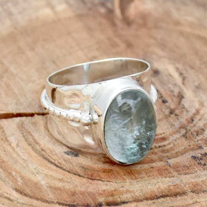 Elegant Bohemian 925 Sterling Silver Statement Ring Handmade with Natural Coral White Aquamarine Gemstone Perfect Gift for Her