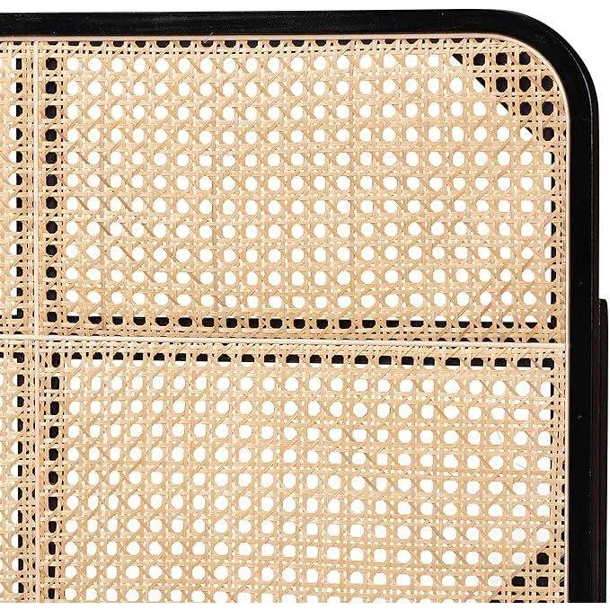 Elegant Boho Chic Queen Headboard with Handwoven Rattan Design Black Finish Vietnam Origin Bedroom Furniture by DreamCraft