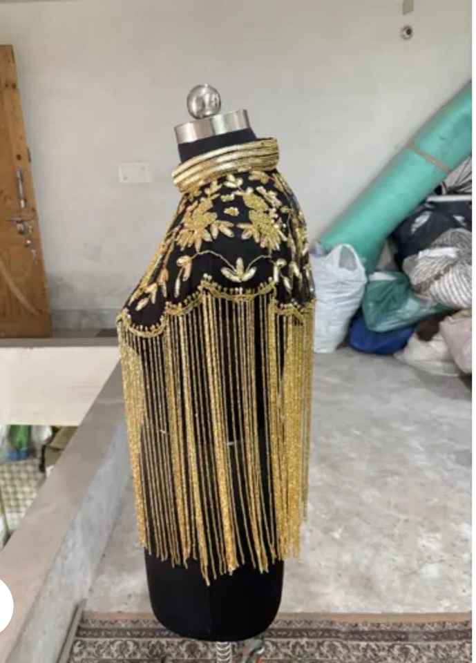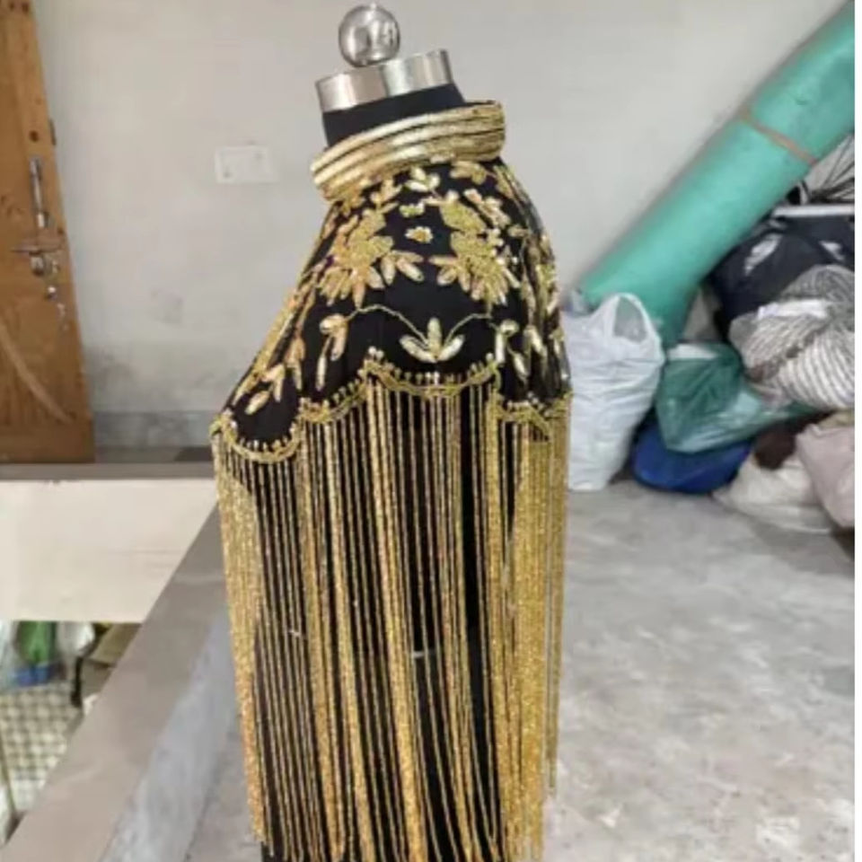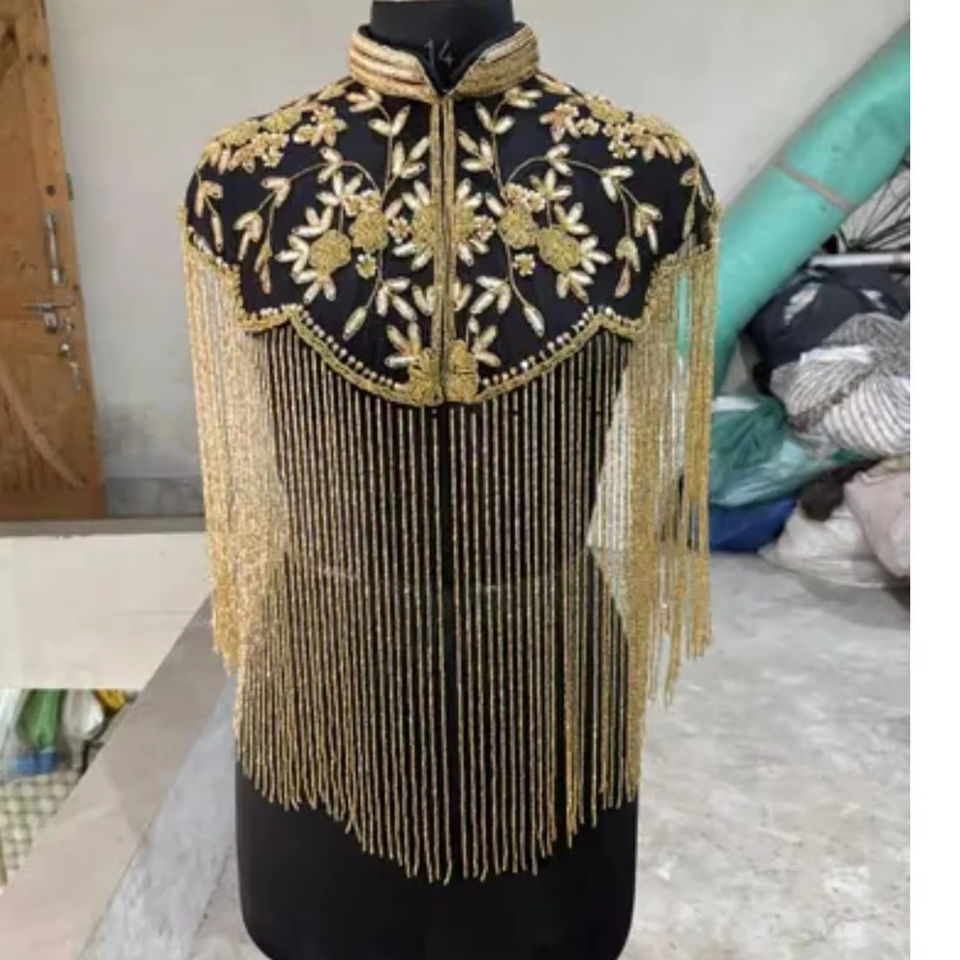 Elegant Burlesque Cape Beaded Sequins Fringe Stand-Neck Design Polyester Material Adult Festive Clothing for Club Occasions