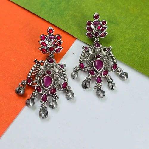 name or words:ANTIQUE SILVER PLATEDJHUMKA EARRINS