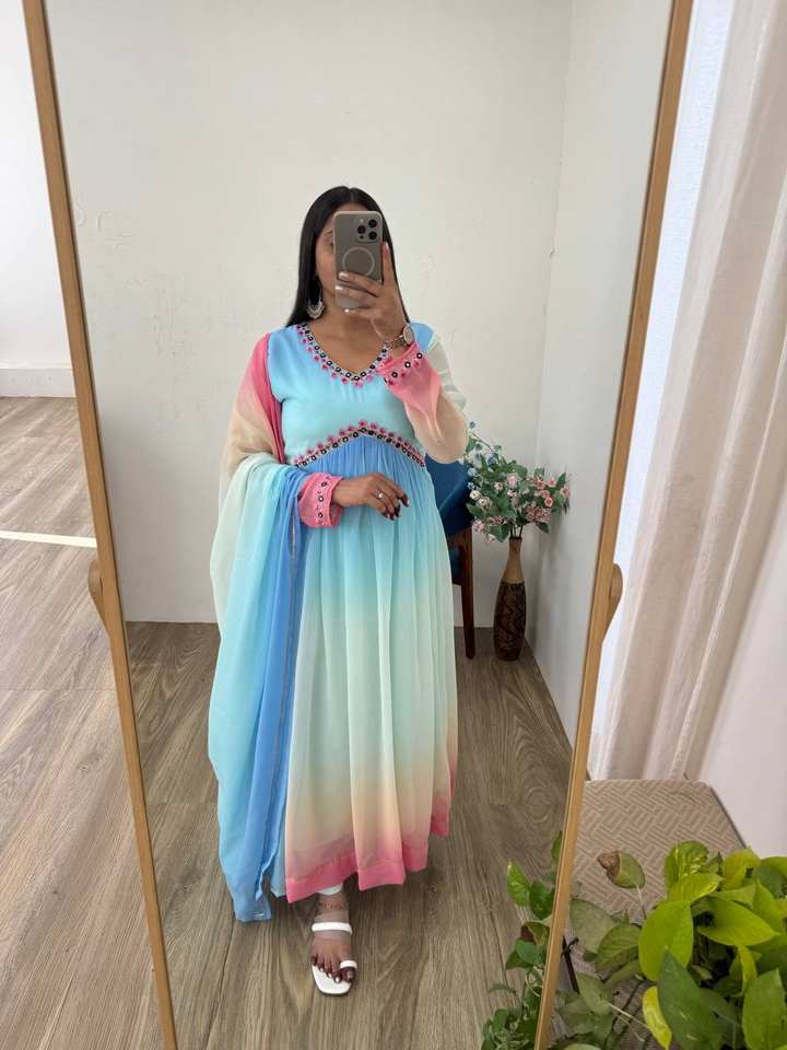 Élégant ensemble Chinnon Anarkali Kurta avec broderie détaillée, vêtements ethniques confortables et chics pour dames