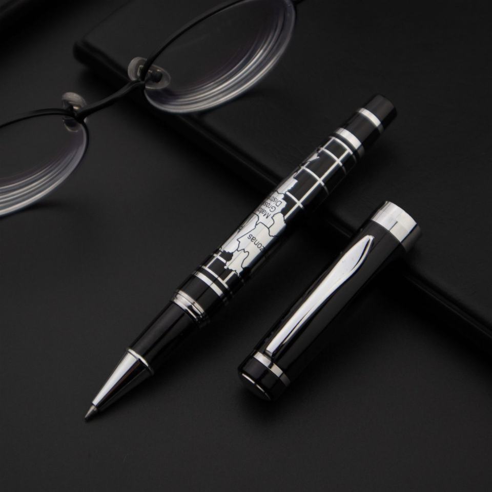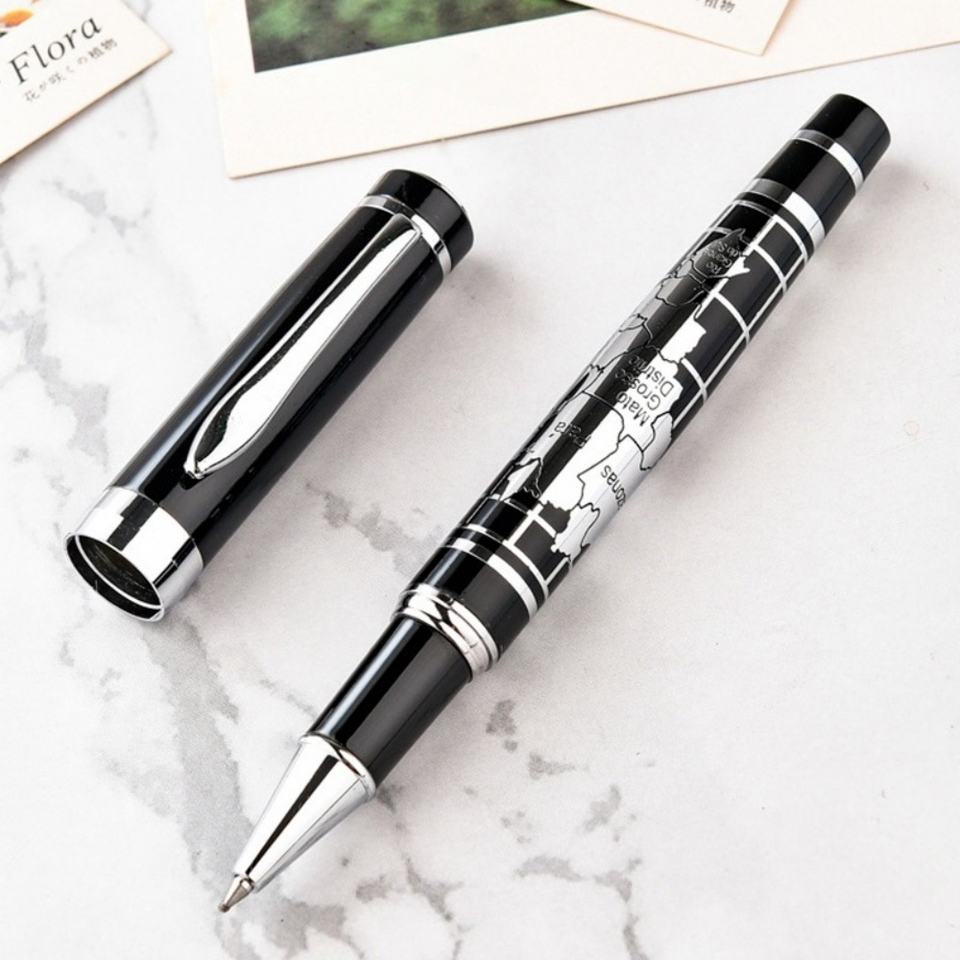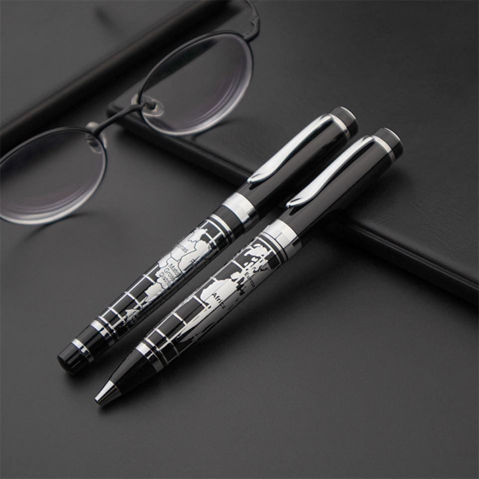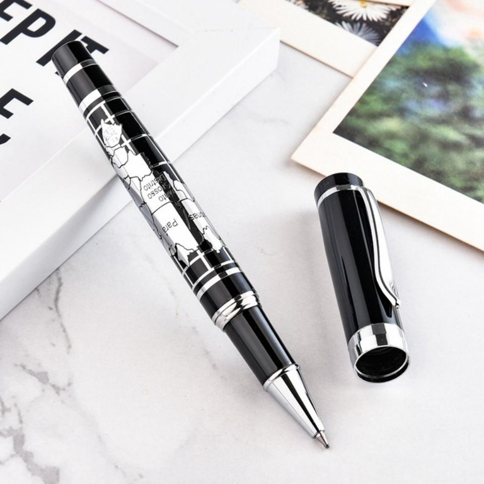 Stylo à bille élégant et classique en métal avec design de carte du monde, logo personnalisé, pour une utilisation promotionnelle d'entreprise et la vente en gros
