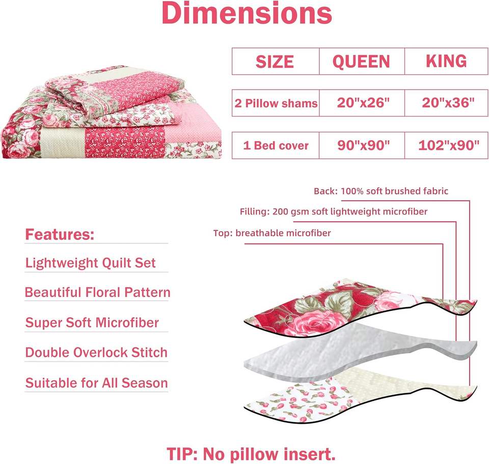 Élégant ensemble de couette réversible AllSeason Cmfshape avec taies d'oreiller Queen Size 90x90 Romantic Pink