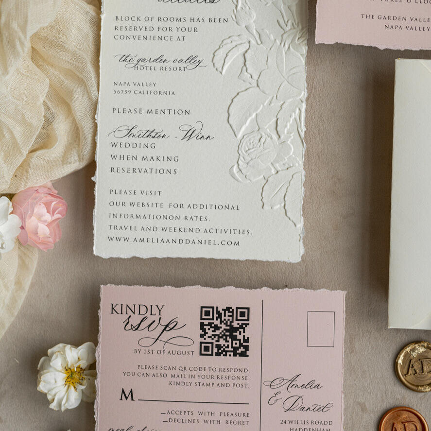 Élégantes cartes d'invitation de mariage personnalisées avec gaufrage 3D et enveloppe RSVP – Mariage moderne invité