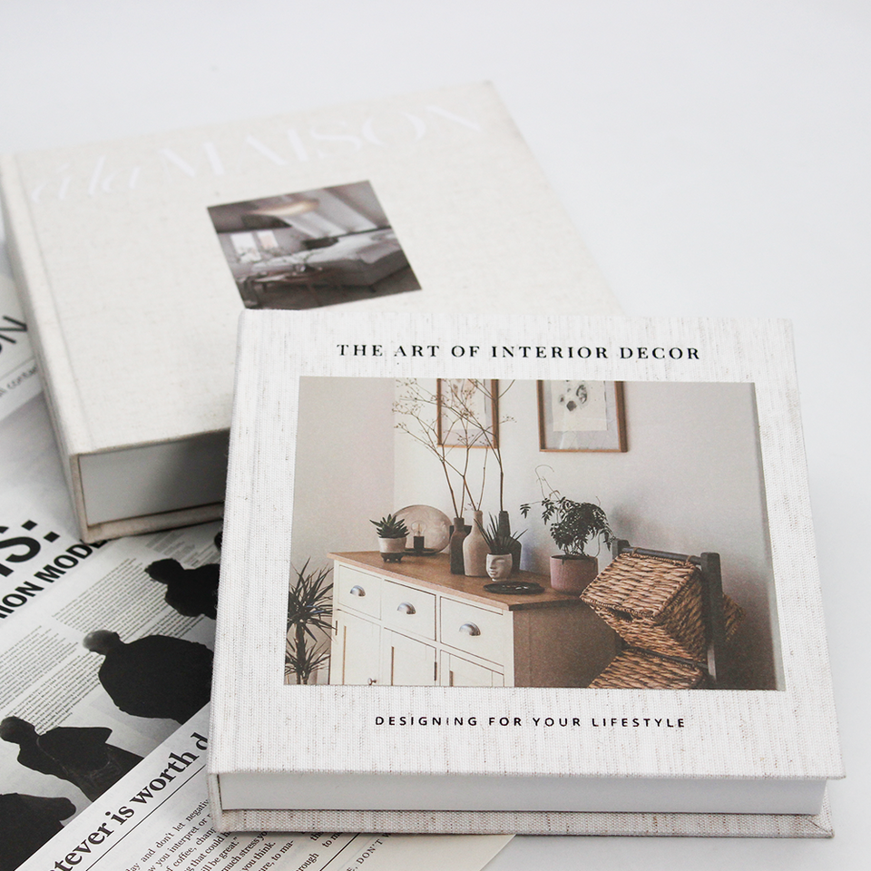 Boîte de rangement élégante en forme de faux livre en papier d'art haut de gamme avec couverture en tissu Décoration artistique de la maison