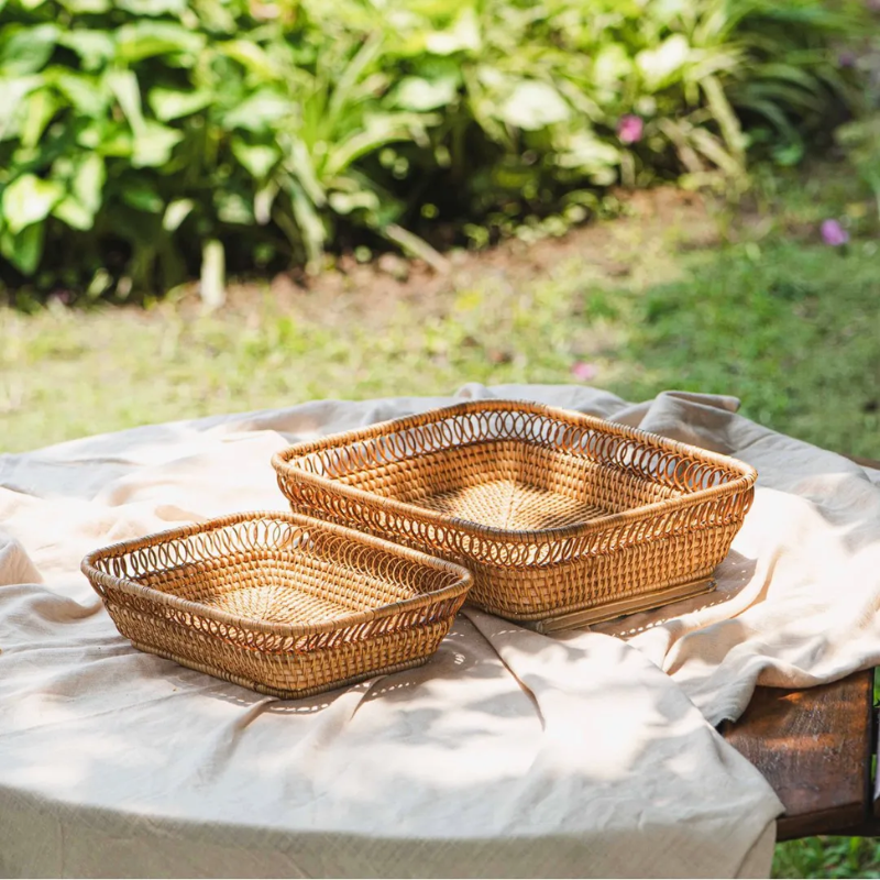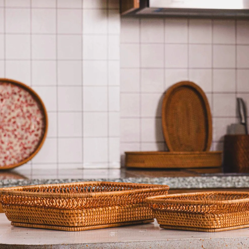 Plateau en rotin en osier naturel écologique élégant personnalisable plateaux de rangement multifonctionnels Table basse salon bureau