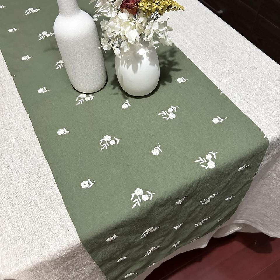 Chemin de table en coton brodé dobby personnalisé élégant, imprimé floral, décoration de mariage à domicile, tissu tissé durable pour tables à manger