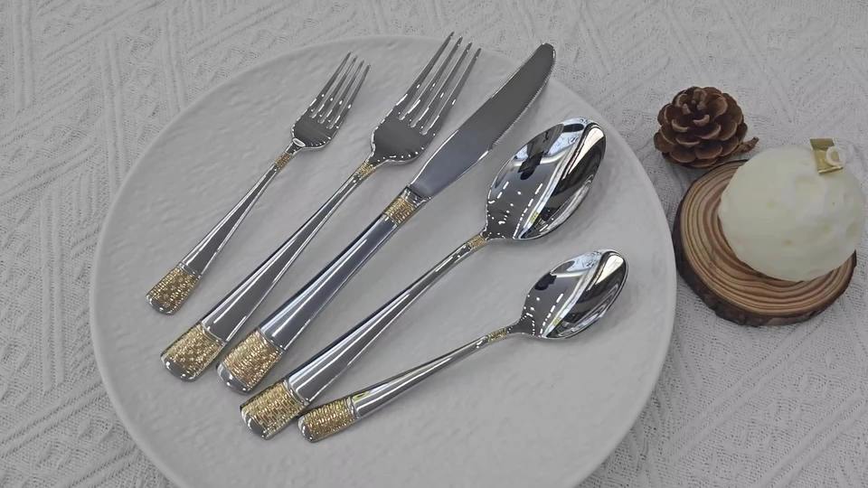 Elegant Cutlery Customization Gold Plated Spoon Fork Knife Stainless Steel Cutlery for Hotel Restaurant