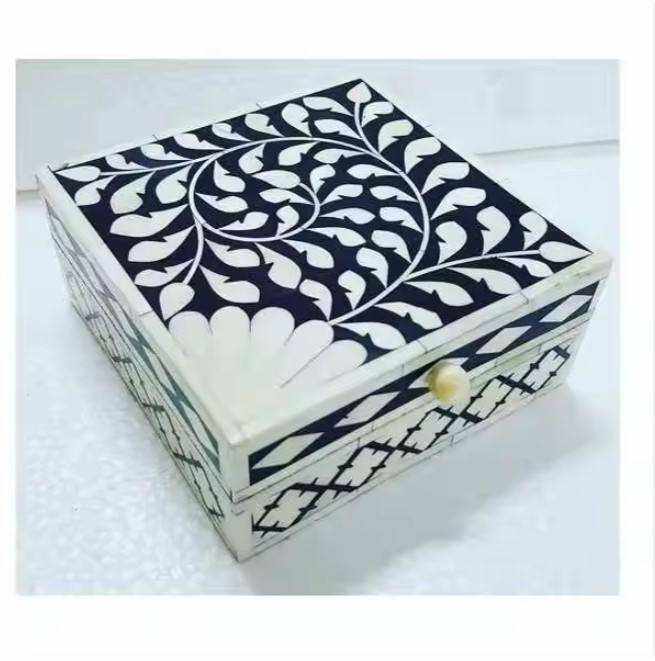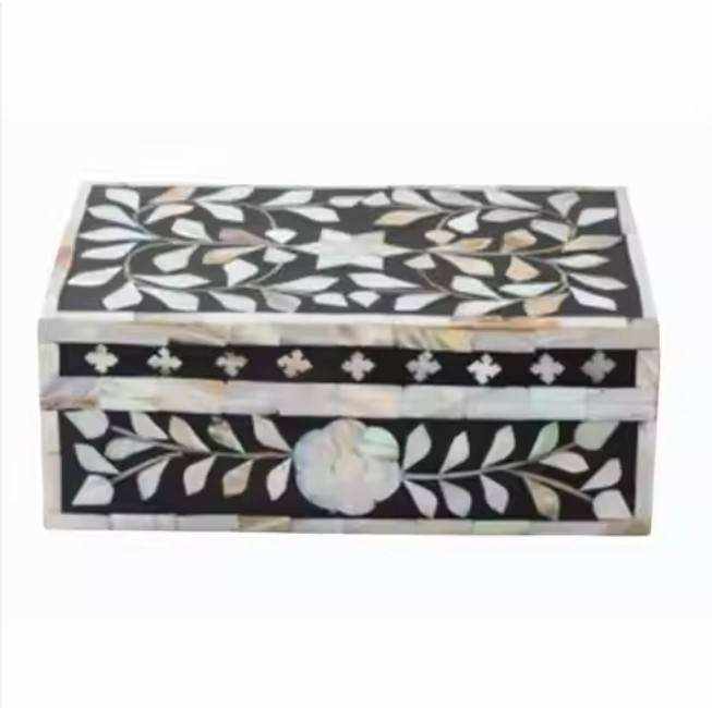 Boîte à bijoux élégante décorative en os incrusté de nacre et de bois pour la décoration intérieure, rangement de cadeaux, logo personnalisé disponible