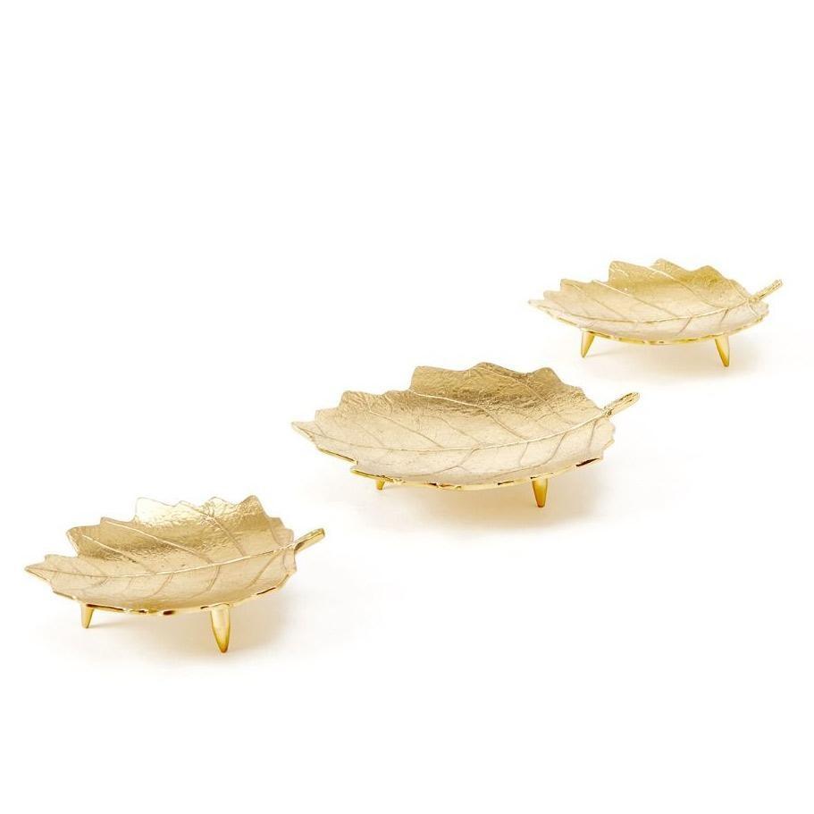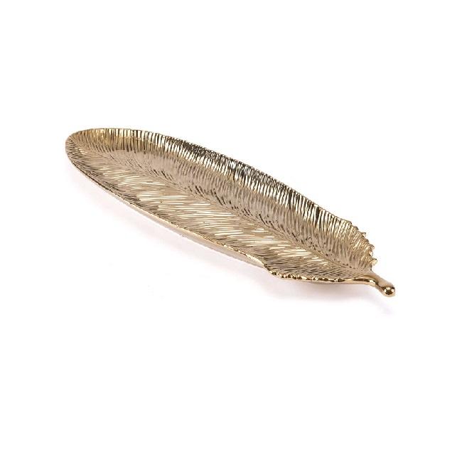 Plateau en aluminium de forme élégante en forme de feuille avec finition dorée brillante, pour servir des fruits secs, fait à la main, personnalisé