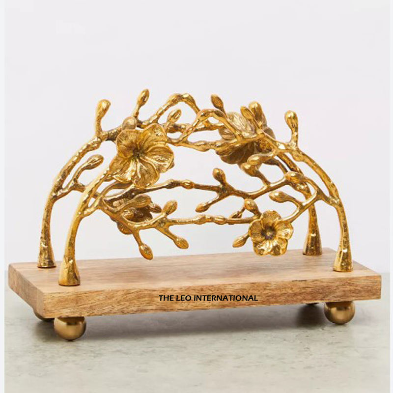 Design élégant Porte-serviettes décoratif en forme de fleur de couleur dorée pour la décoration de table Couleur noire