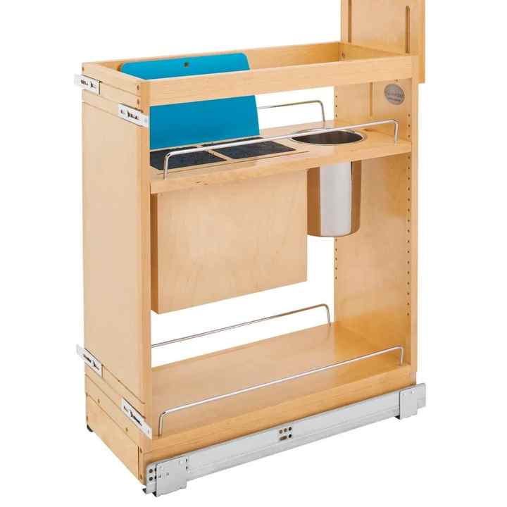 Panier de cuisine contemporain en bois massif, design élégant, durable, carré, coulissant