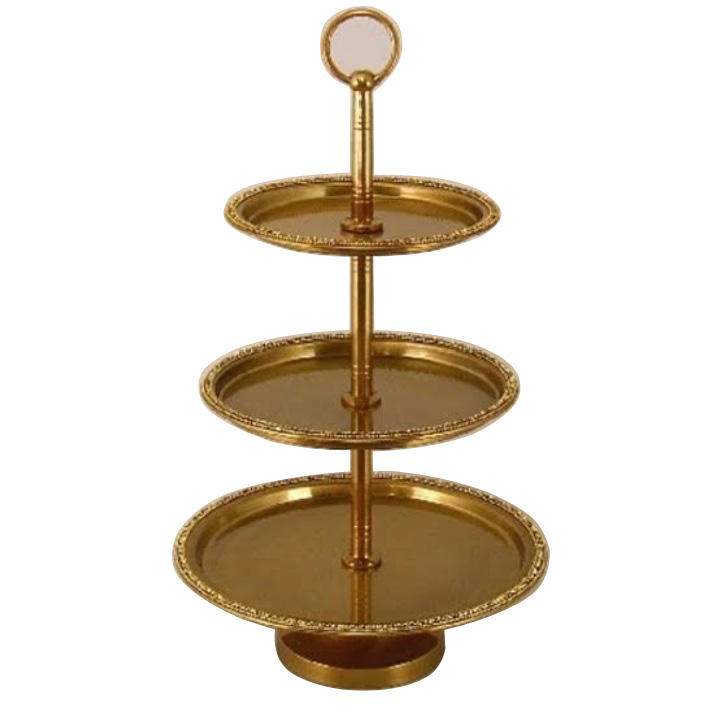 Support à gâteau élégant, finition plaquée or, forme arrondie, 2 étages et bordure design, pour usage intérieur et extérieur