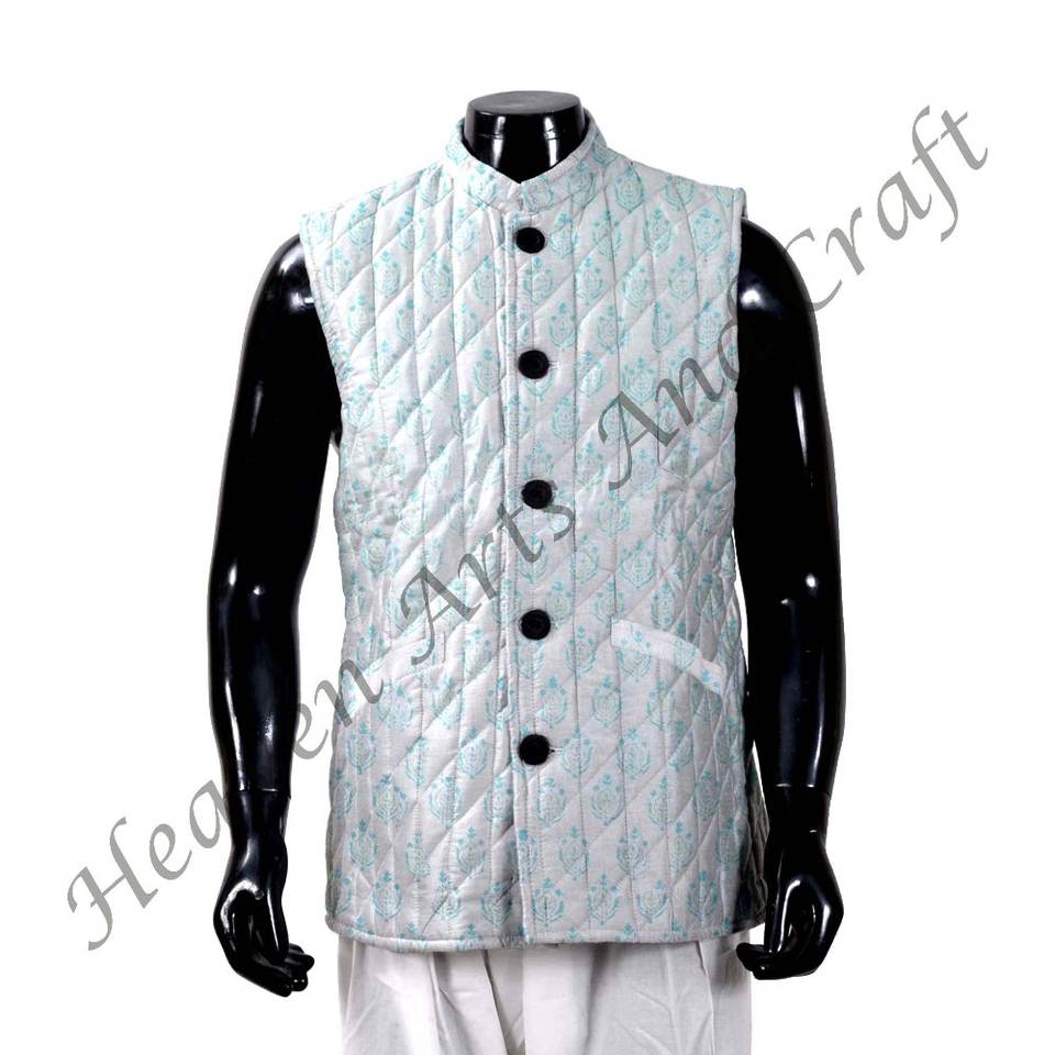 Vestes matelassées imprimées à la main avec fermeture à boutons Manteau Nehru sans manches pour l'hiver Vêtements pour hommes
