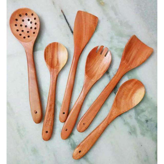 Ensemble de cuillères en bois au design élégant fait à la main avec bords lisses et construction solide, idéal pour mélanger et servir des aliments d'Inde