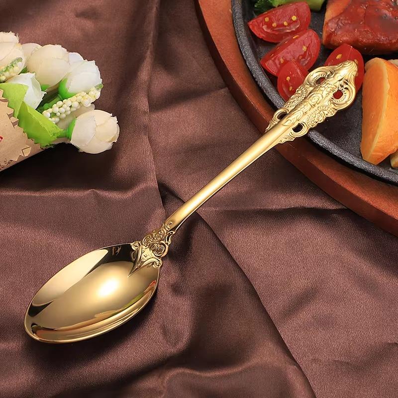 Ensemble de couverts en métal au design élégant avec une poignée étonnante et décente polie en argent pour la table à manger
